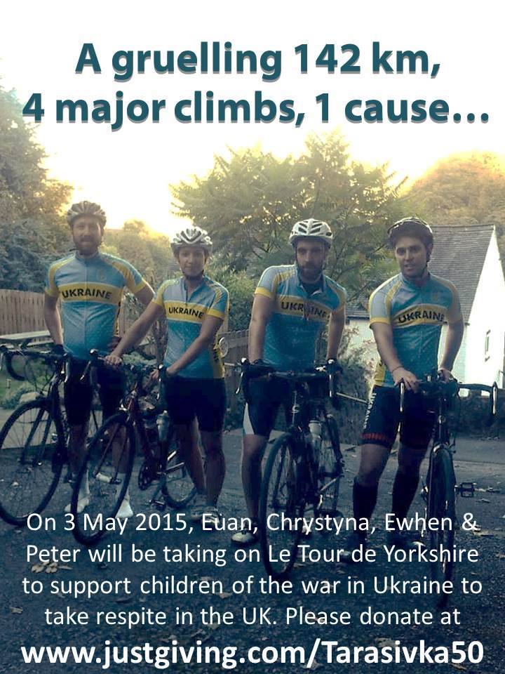 We are supporting Ukrainian Youth Association of Great Britain in the “Tabir 2015 – Children of Heroes Project” Along with Euan, Chrystyna, Ewhen & James, I’ll be taking on the Tour De Yorkshire Sportive on May 3rd. Please donate generously to the cause and allow these children who have suffered greatly to come and enjoy the UK and CYM Tarasivka! Thanks in advance!