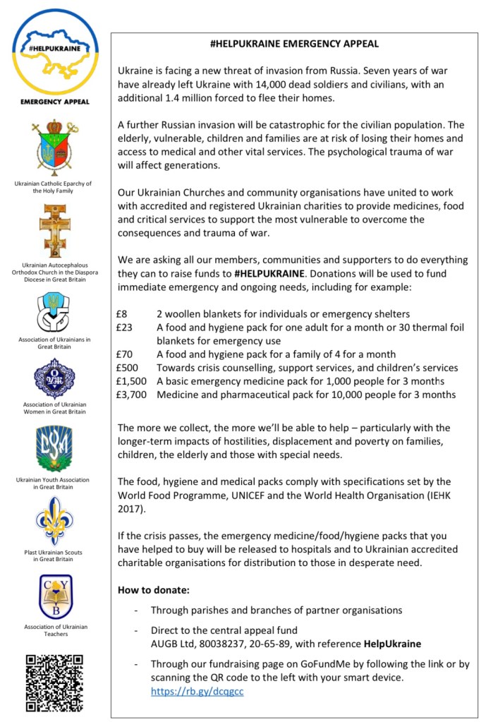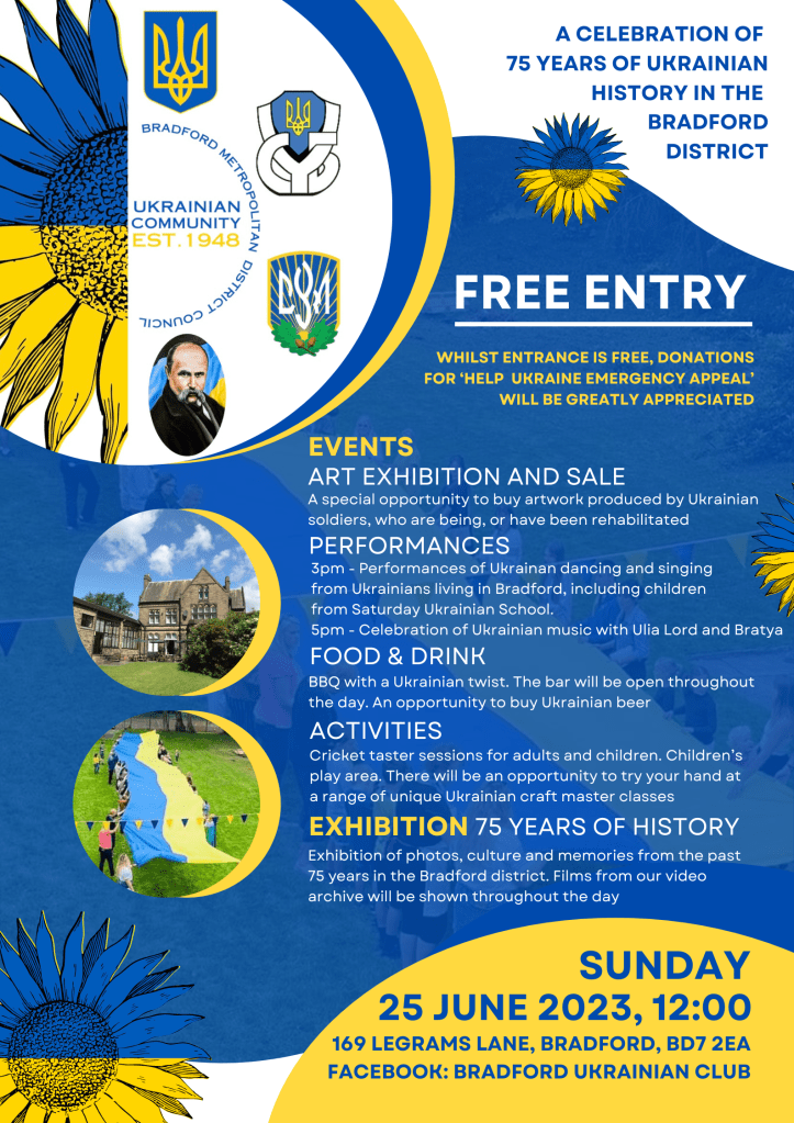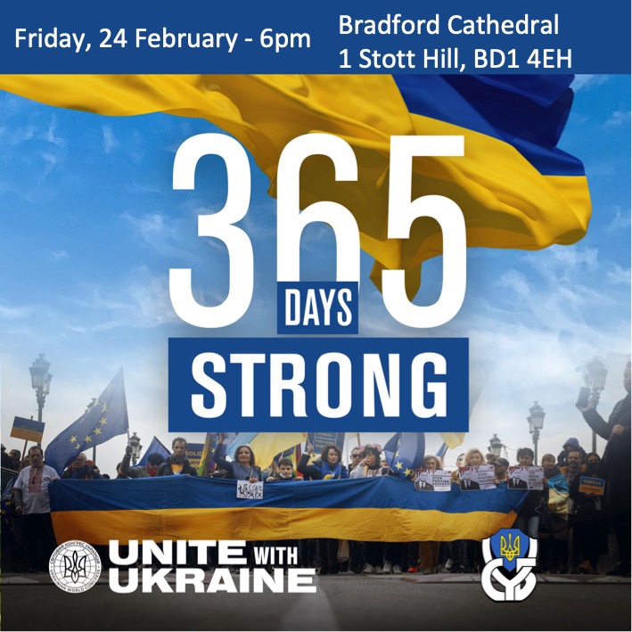 Events are also taking place across the country so for those not in Bradford please do attend an event local to you, and show Ukraine that the world continues to support the courage, determination and resolve of the Ukrainian people