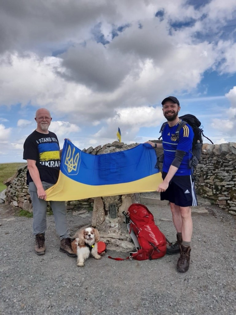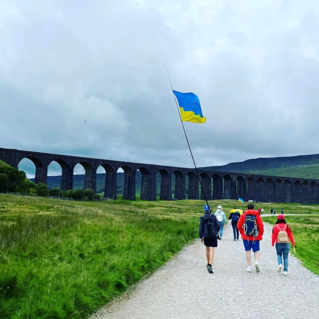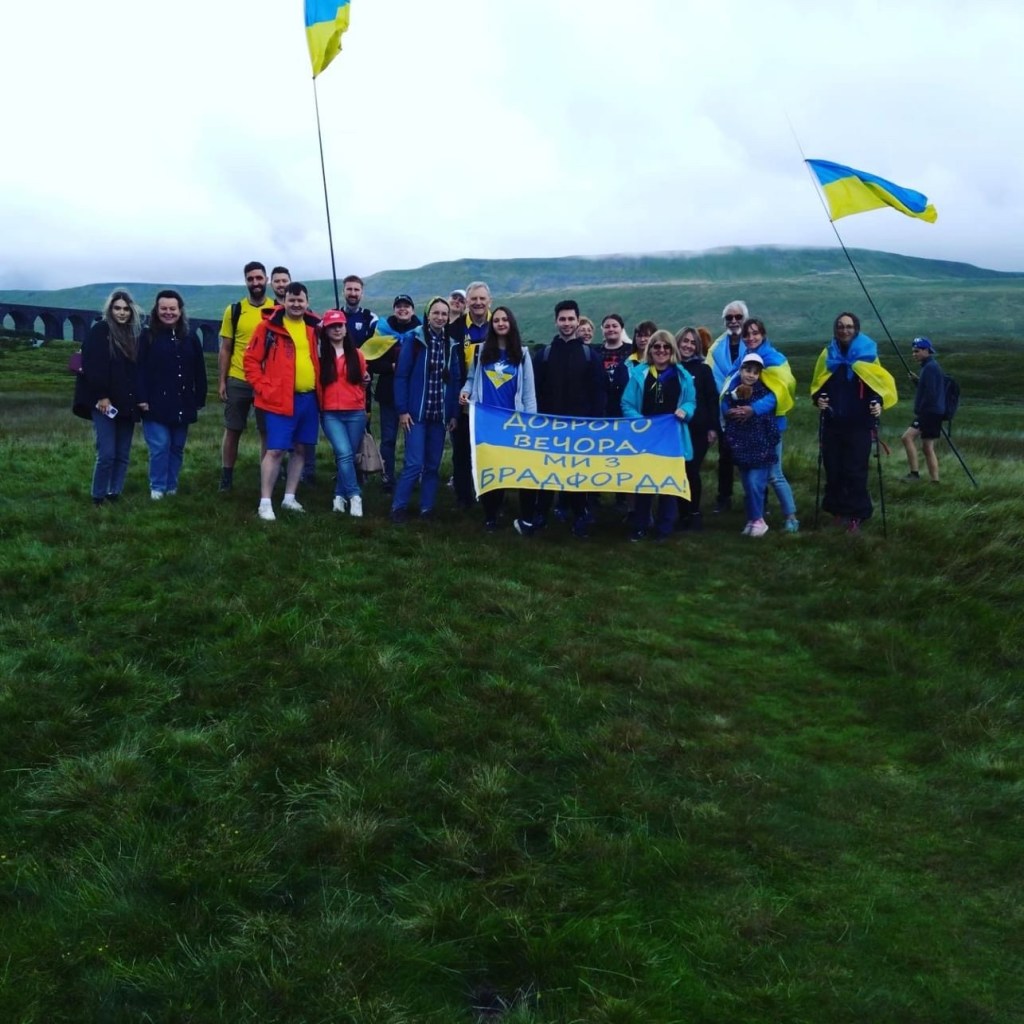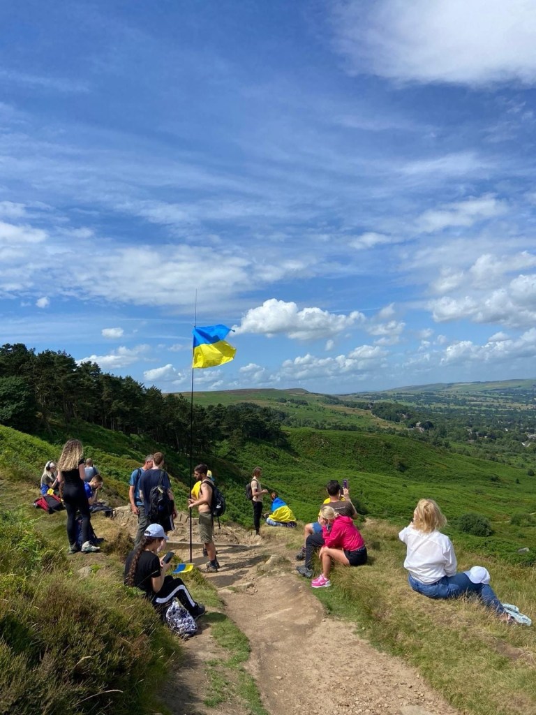 Yesterday we laced up our walking boots to climb high above Yorkshire to show the continued strength, determination, resilience, and bravery of the Ukrainian people. At the trig point we raised the blue and yellow flag and sang the Ukrainian National Anthem