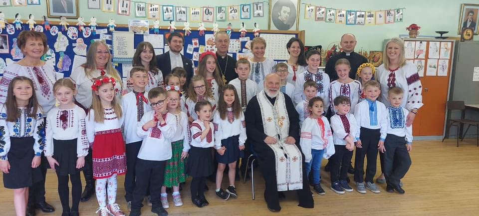 Сьогодні в нашій громаді ми були благословенні канонічним візитом єпископа Кеннета разом із двома членами єпархіальної курії. Вони відвідали нашу українську суботню школу та зустрілися з вчителями та учнями, після чого відбулося освячення меморіалу загиблим під час російського вторгнення в Україну.