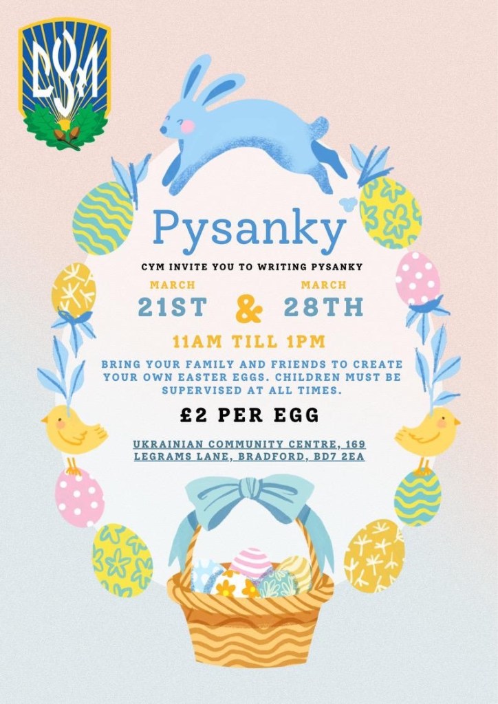 Blessing of the baskets will take place at 10am at the club on Saturday 11th April. Followed by blessings at Church on Park View Road at 6pm, following the 5pm mass. Good Friday masses will take place at Church at 11am and 6pm. Easter Sunday mass is at 10.30am. Easter Day is a public holiday across Ukraine and celebrates Jesus’ resurrection from death, as told in the Christian bible. Ukraine’s Easter holiday follows the Orthodox Easter date, which is often different from the Easter date determined by other Christian churches. For more information on these celebrations CLICK HERE!