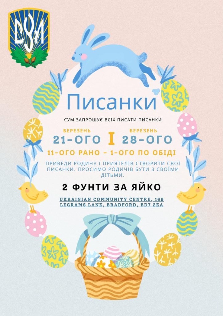 Управи Відділу СУБ, та Товариського Клюбу «Лиман» у Брадфорді повідомляють своє членство та все українське громадянство, що в неділю 30-го березня 2025 року відбудуться: