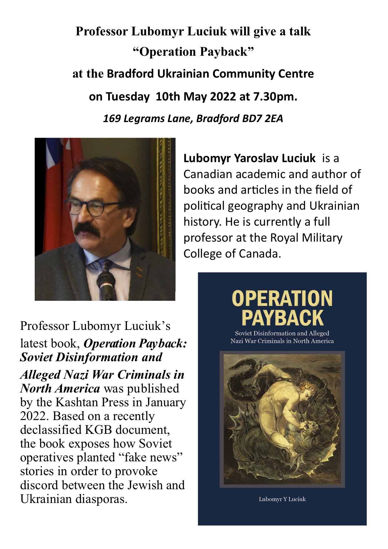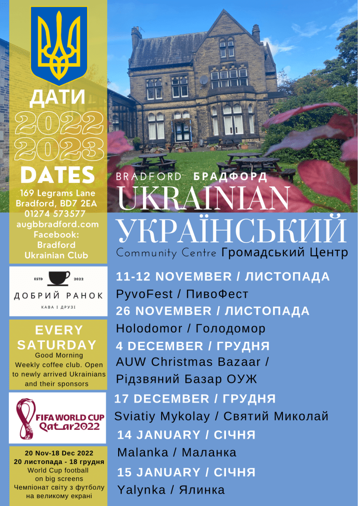 We invite all members of AUGB Bradford and Club Lyman, along with the wider Ukrainian Community to attend and participate in the meeting.