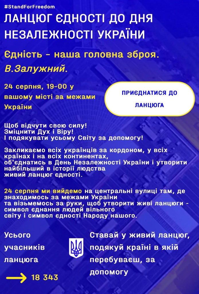 Сьогодні є дуже важливо продемонструвати нашу підтримку України в її скрутну годину та єднання у солідарності. Тож, запрошуємо приєднатись і також за змоги, одягнути вишиванку.