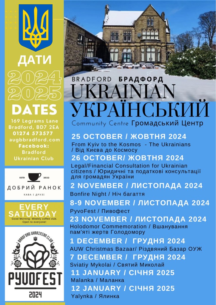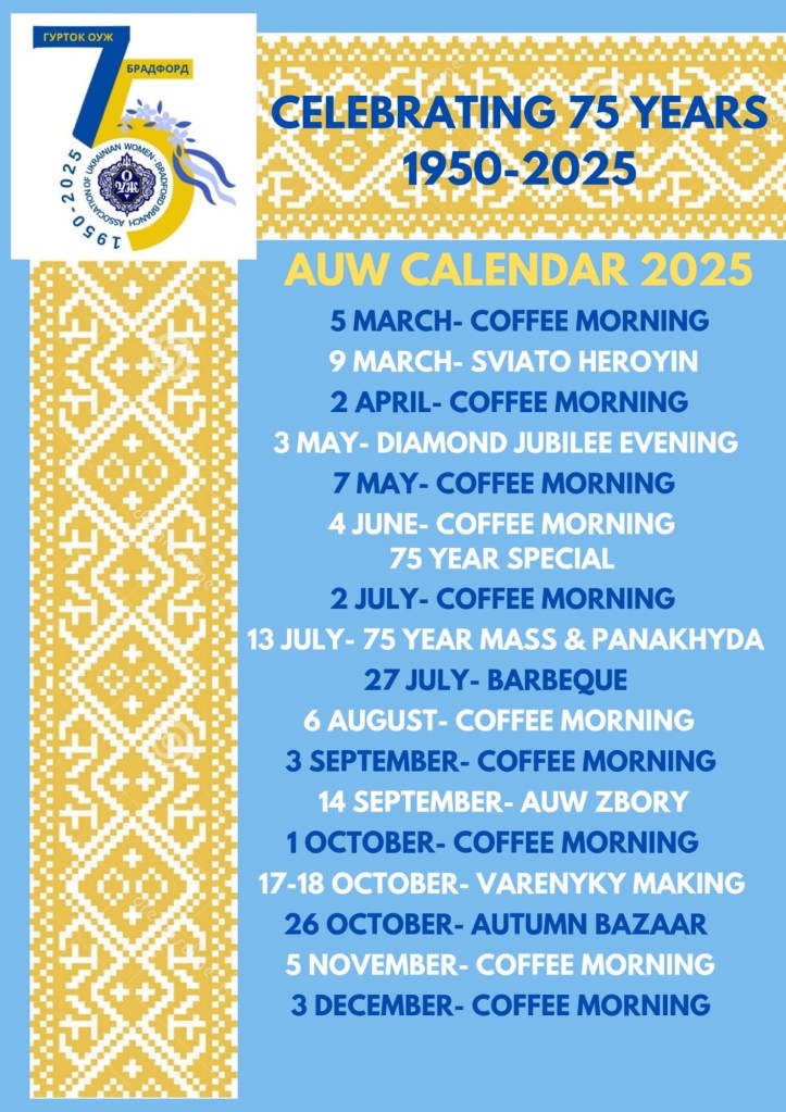 The Association of Ukrainians in Great Britain, Bradford Branch & the Ukrainian Club “Lyman” hereby give notice of their Annual General Meetings to be help on Sunday 30th March 2025.