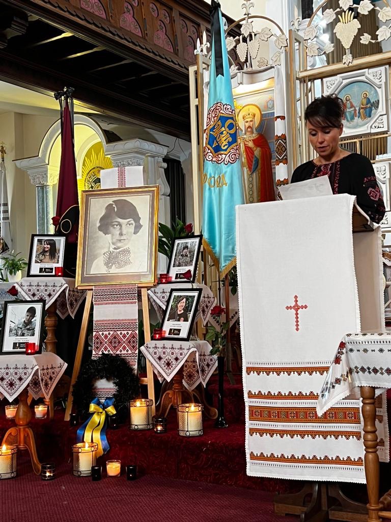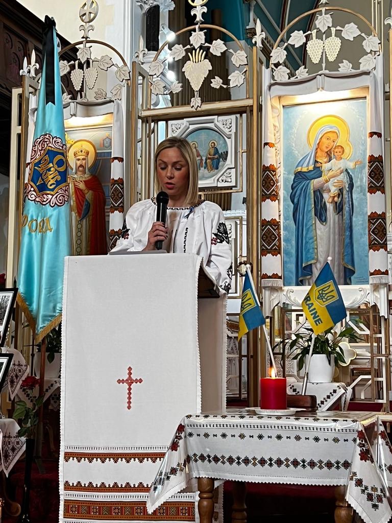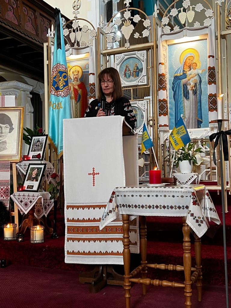 On Sunday 25 February, members of AUW in Bradford dressed in embroidered blouses commemorated Ukrainian heroines, by holding a mass at the Holy Trinity and Our Lady of Pochaiv church, followed by a panakhyda (memorial service). In church after the panakhyda, members of AUW presented a short programme, reading excerpts of acts of heroism by the following women: Olena Teliha, Oksana Meshko, Olha Basarab, Olena Stepaniv, Maria Skrentovych-Lavriv and Olha Ilkiv (pseudonym Roksolana).