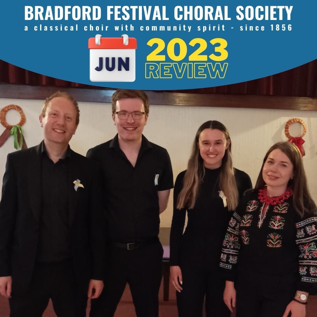 Our 2023 review now skips along to June for our summer concert at Bradford Ukrainian Club @bradfordukrainianclub where we welcomed talented guest musicians Svetlana Riadchenko (soprano), Sophie Mullender (percussion) and Anthony Gray (piano) as well as our heat resistant MD Thomas Leech who kept the choir’s energy levels high despite the high temperatures that day. What a great evening of music-making!